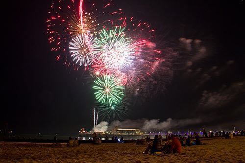 O que estamos falando é do Bournemouth Friday Fireworks. Trata-se de uma série de noites com fogos de artifícios no Píer de Bournemouth, um dos pontos turísticos. A cena que você vai ver é assim: